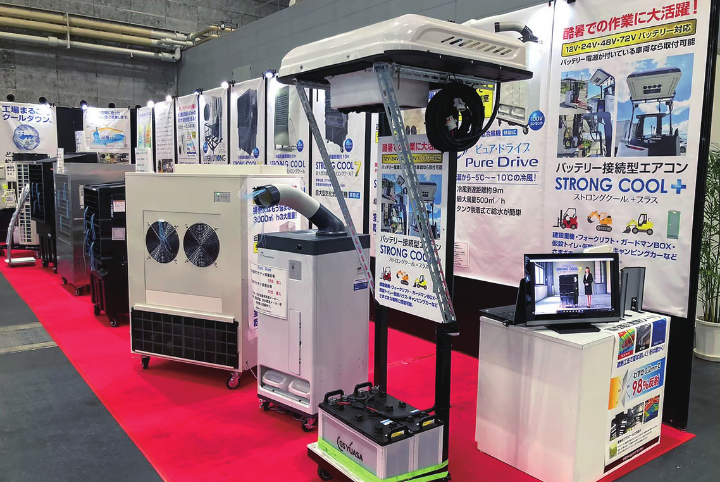 昨年には、「ストロングクール」の新商品2機種「V」と「+(プラス)」を登場させた。「V」は、世界初の100Vで気化式と大型クーラーのハイブリッドを実現。大風量で移動式だ。また「+」はバッテリー接続型エアコンで、建設重機やゴルフカト、仮設トイレなど幅広く対応する。